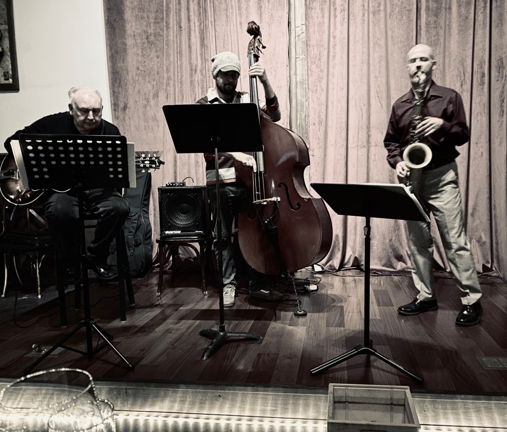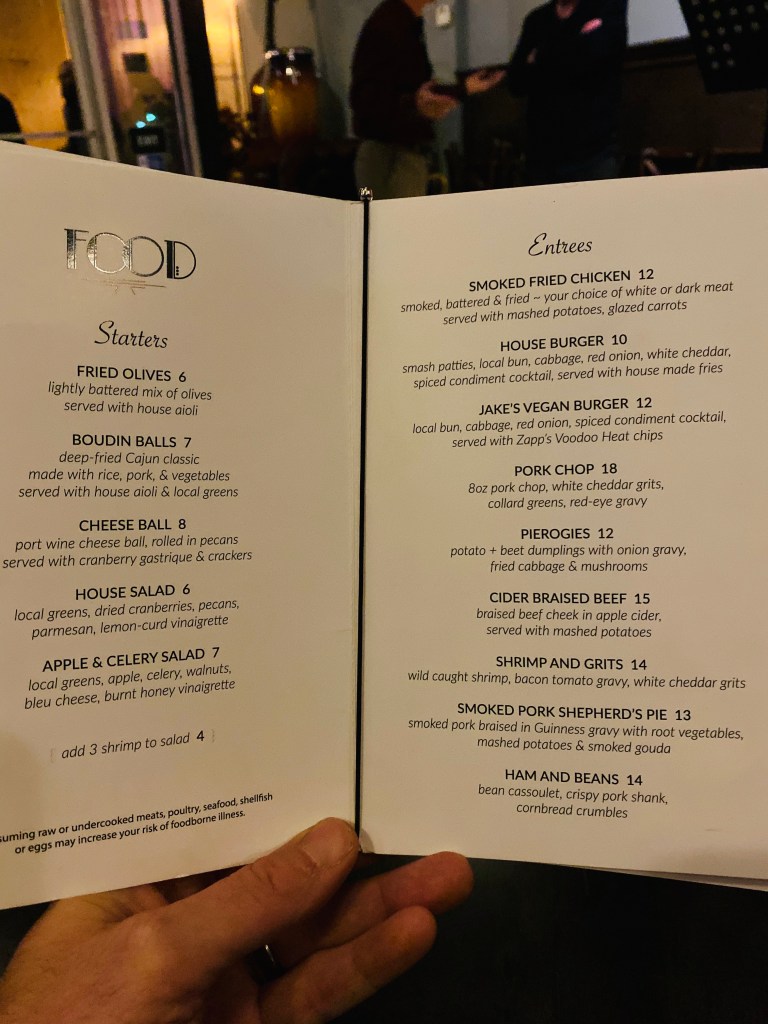 As I take my first step inside Cedar Chandelier’s Cafe, and I am literally teleported back into another dimension. An old Time Gospel Band up on the main stage just strumming, plucking and praising his name. Imagine the Movie “O Brother Where Art Though” and that will paint the best picture.