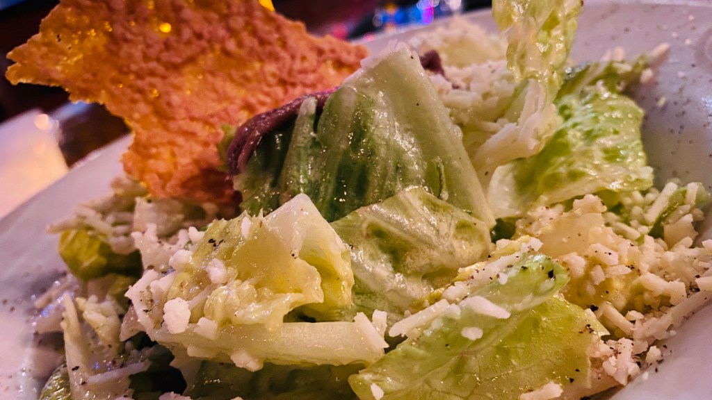 The salad was refreshing and they were on point with the cracked pepper service. I would say it was ok, the dressing was a little bland, and lacking in the garlic and lemon flavor and heavy on the anchovy category. I don’t mind heavy anchovy but I like a follow through with spice and a little Worcestershire goes a long way with this Texas boy. Douse a little bit of that Texas staple and kick up the garlic. If you are serving white anchovies I like a whole one for garnish but don’t put a whole salty dark anchovy fry on my salad, my wife won’t kiss me for a week, lol 😝
