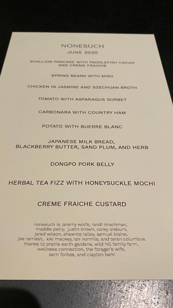 I normally don’t choose to write about restaurants that I don’t prefer, but this one has to be written about. It is not the same as when it was named the Best New Restaurant in America in 2018 by Bon Appetit Magazine. This is obvious when you compare photos of meals from 2018 or even 2019 and our meal. My prediction is something happened as it always does with partnerships and with the food world. I had to call the restaurant to get the scoop and see if they were actually proud of the food they served us all.