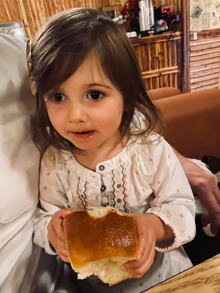 My 3 Year Old Daughter Lilly Nawing On A Yeast Roll
