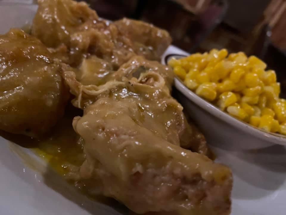 I had an Aunt Mary Jane who was about 300 pounds on a skinny day and I was absolutely spoiled to her Chicken & Dumplings so it is thoroughly hard to impress me with this dish. Let me tell you straight……Delena serves Homemade Chicken Numpling and it is freaking amazing!!!! It is a mix between and dumpling and a noodle and I am loving it!