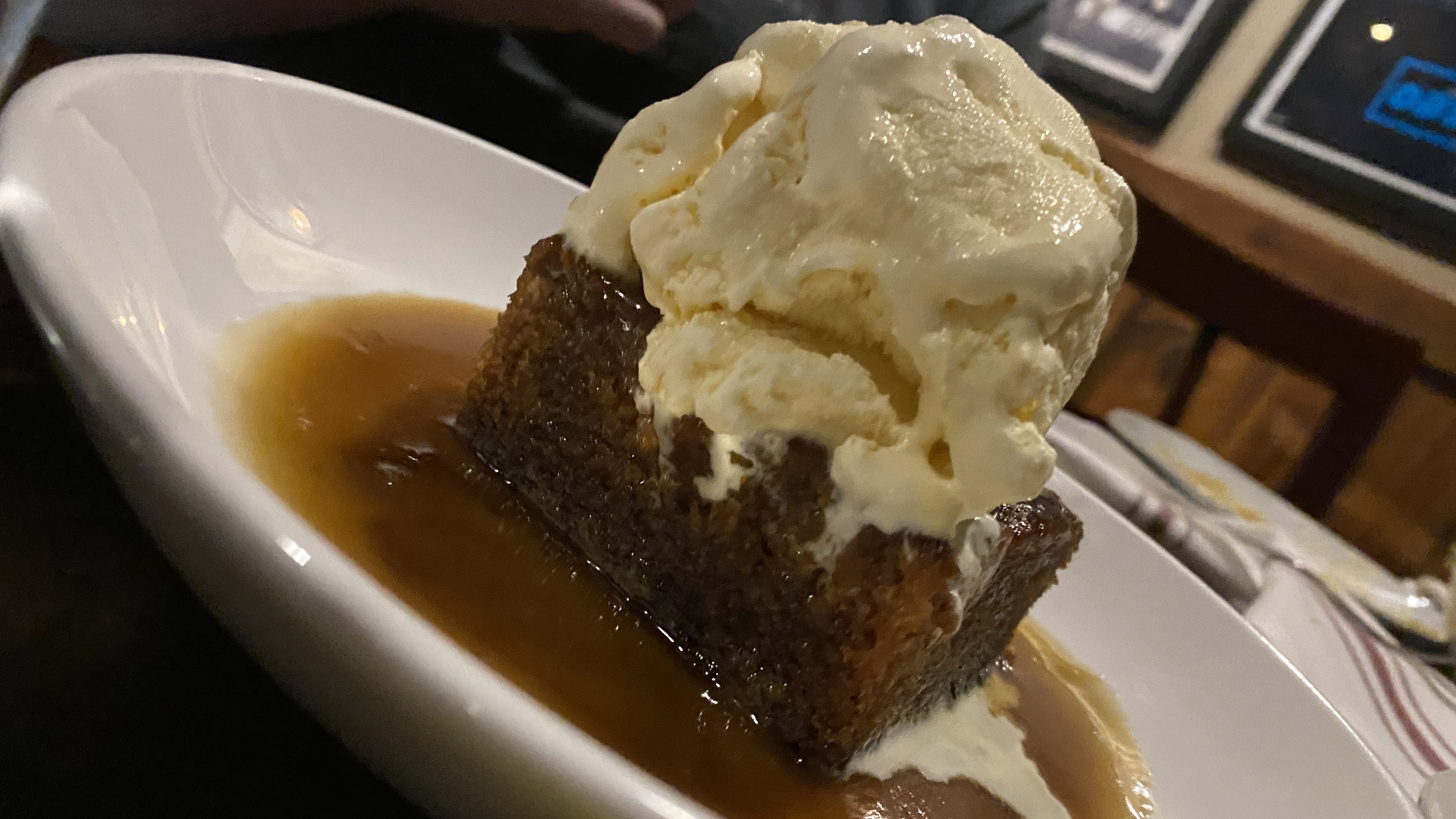 The final course is upon us and I am very sad at this point, we are all starving, we know the curtain is closing and we have waited too long to come. If only this salted creme fraiche was mixed with the carbonara, possibly that dish would have at least been good. As you dip the spoon in the dessert and let it hit your palate the salty flavors make your mouth pucker and your mind wonders why they would season the dessert so much and not the savory food.